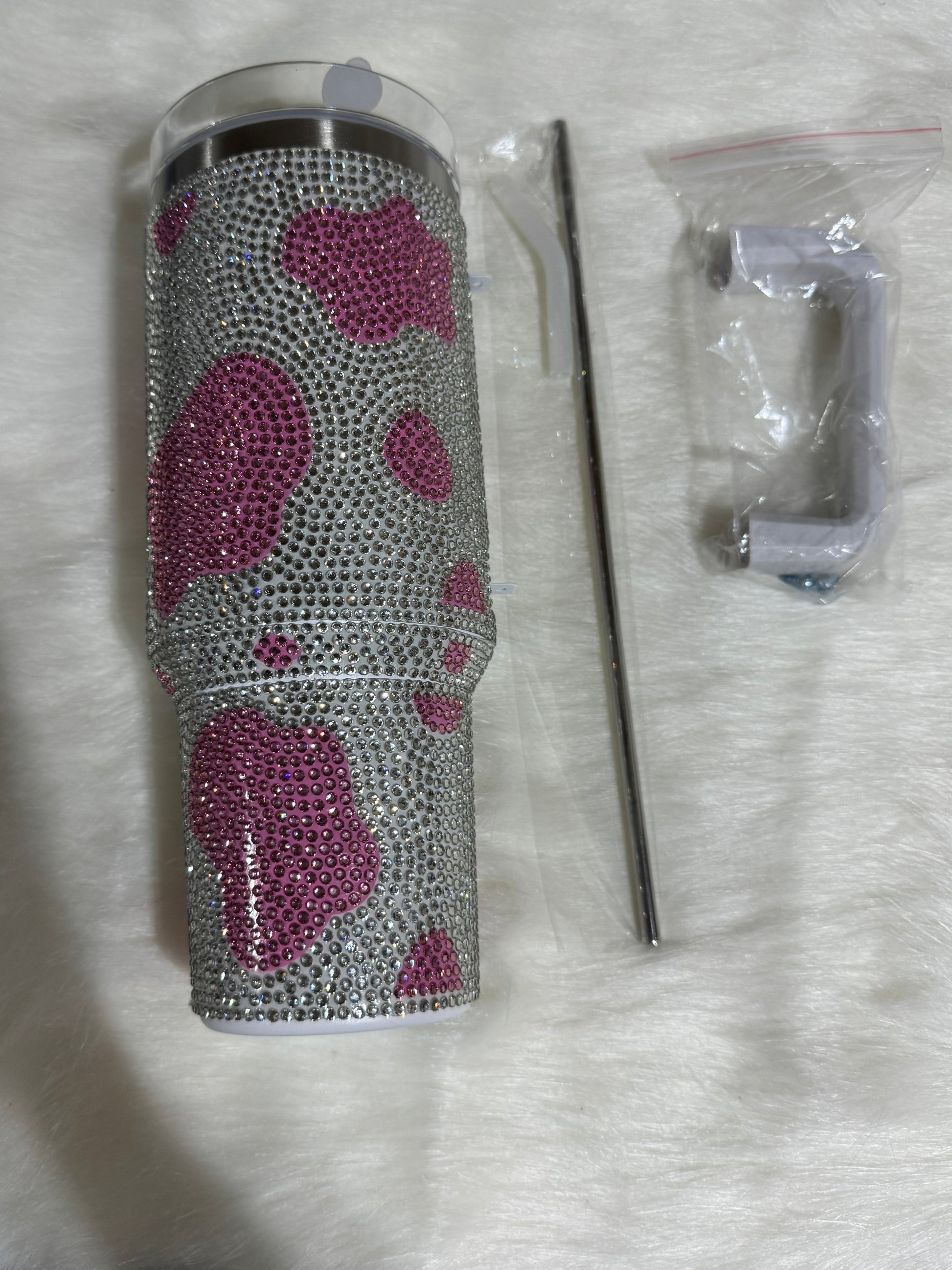 40oz Cow Print Bling Tumbler